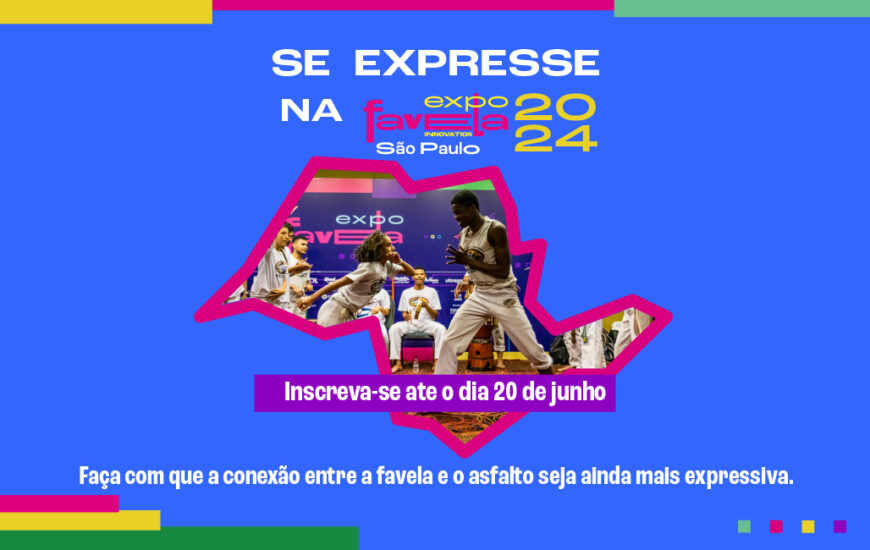 O espaço Expressões da Quebrada está com inscrições abertas. Inscrições vão até 20 de junho O WTC Events Center, em São Paulo, recebe, nos dias 05, 06 e 07 de julho, mais uma edição estadual da Expo Favela Innovation São...