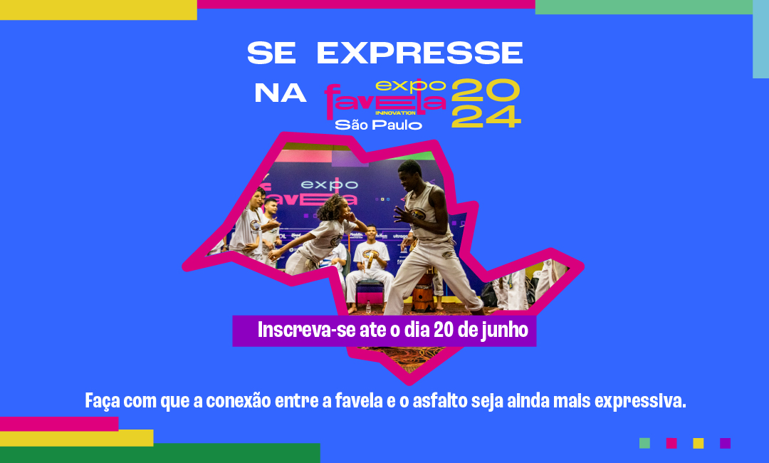O prazo para inscrição vai até o dia 20 de junho. Portanto, não perca tempo e venha se expressar na Expo Favela Innovation São Paulo, a feira de negócios que conecta a favela e o asfalto.